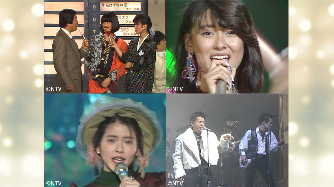 徳光和夫と石野真子の司会、公開生放送で日本テレビにて放送された歌番組「歌のトップテン」。今週のランキング(レコードの売り上げ、ネット局、有線放送、リクエストの4部門の総合)の発表や、アーティスト情報も充実しており、人気を博した。今回はその中から、中森明菜、小泉今日子、チェッカーズらが出演した回を4話一挙放送!